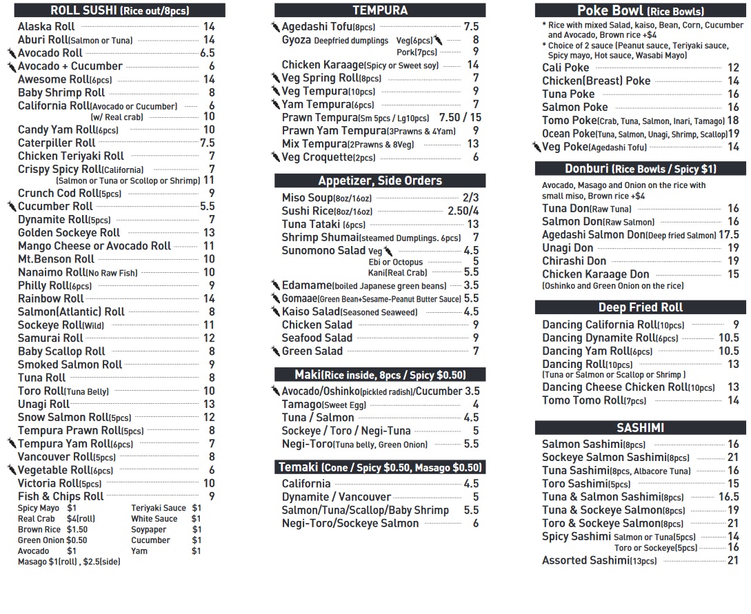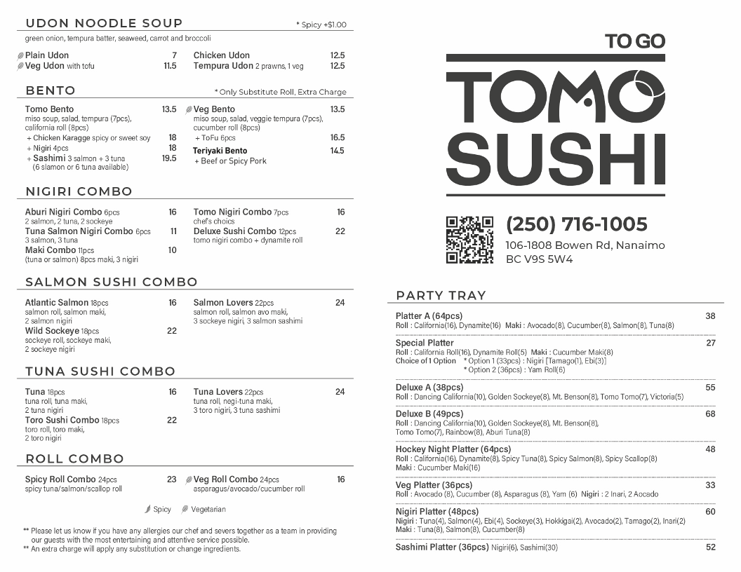 Tomo Sushi Togo Menu